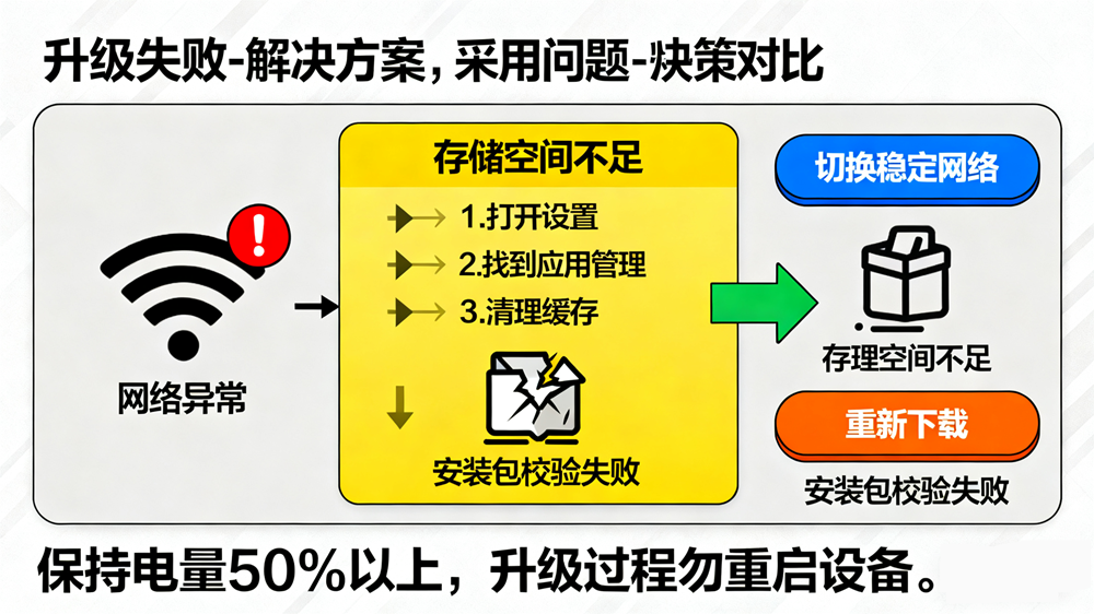 。最后,检查手机存储空间,确保有足够的空闲容量(通常需要几个GB)来存放安装包和完成更新