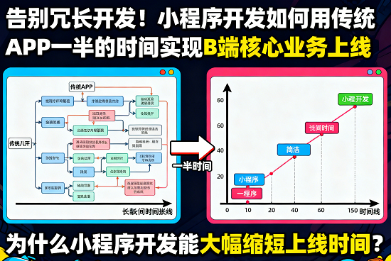 面对动辄数月的传统APP开发周期,许多企业错过了市场机遇。小程序开发以其独特的轻量化优势,正帮助B端企业用一半甚至更短的时间,实现核心业务快速上线,赢得市场先机。
